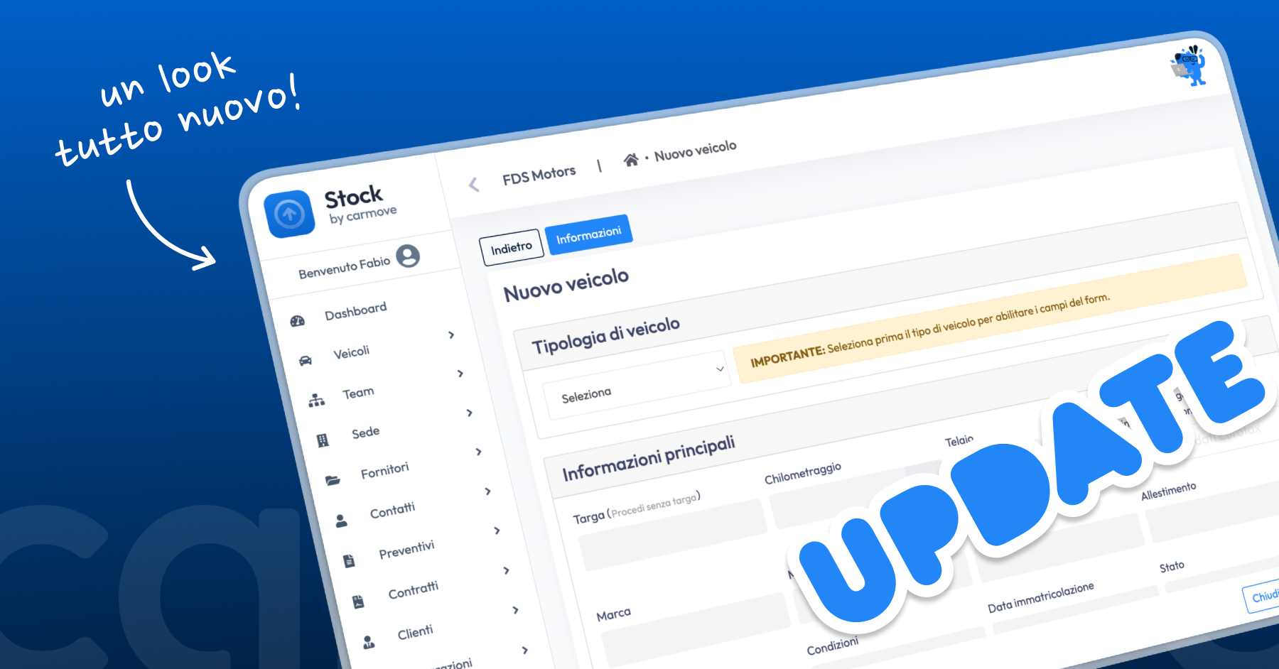 nuovo logo e nuovi colori, per garantire maggiore coerenza con le altre applicazioni Carmove (Web e CRM) e prepararsi alle prossime evoluzioni.